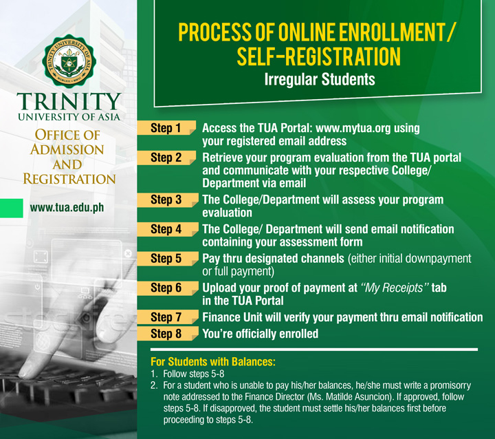 TEL: (02) 8702 2882 loc 142/2144 | EMAIL: registrar@tua.edu.ph