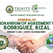 The Trinitian Center for Community Development is the official arm for Community Extension Service that supports Trinity University of Asia in carrying out its Vision and Mission of involving her constituents to live a LIFE that is GOD-centered and in service to the community.