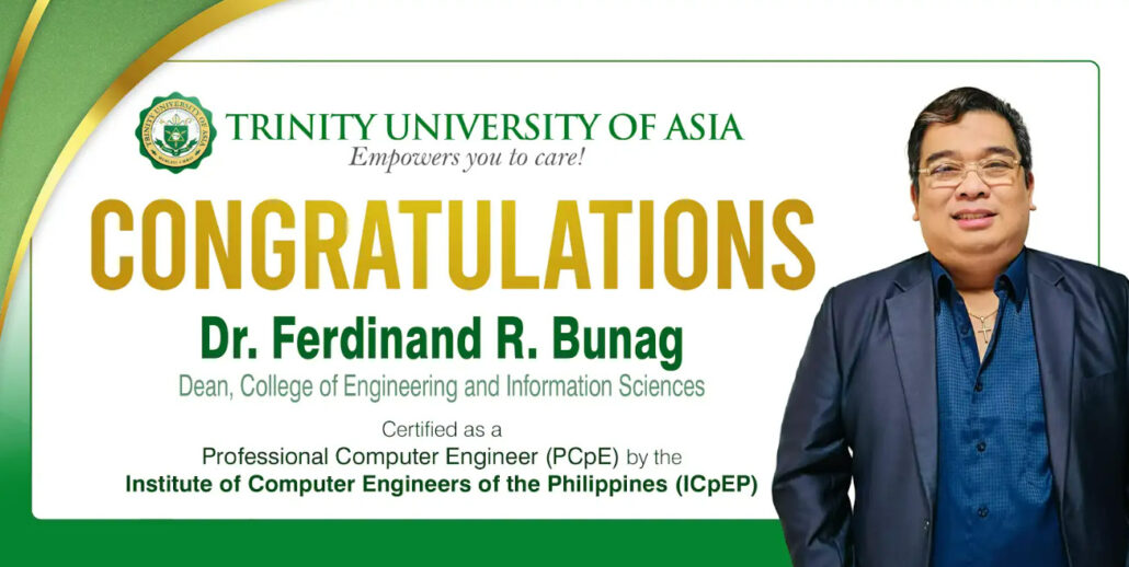 Dr. Ferdinand Bunag, Dean of the College of Engineering and Information Sciences, has been certified as a Professional Computer Engineer (PCpE) by the Institute of Computer Engineers of the Philippines (ICpEP), a recognized professional body in the computing and engineering sector.